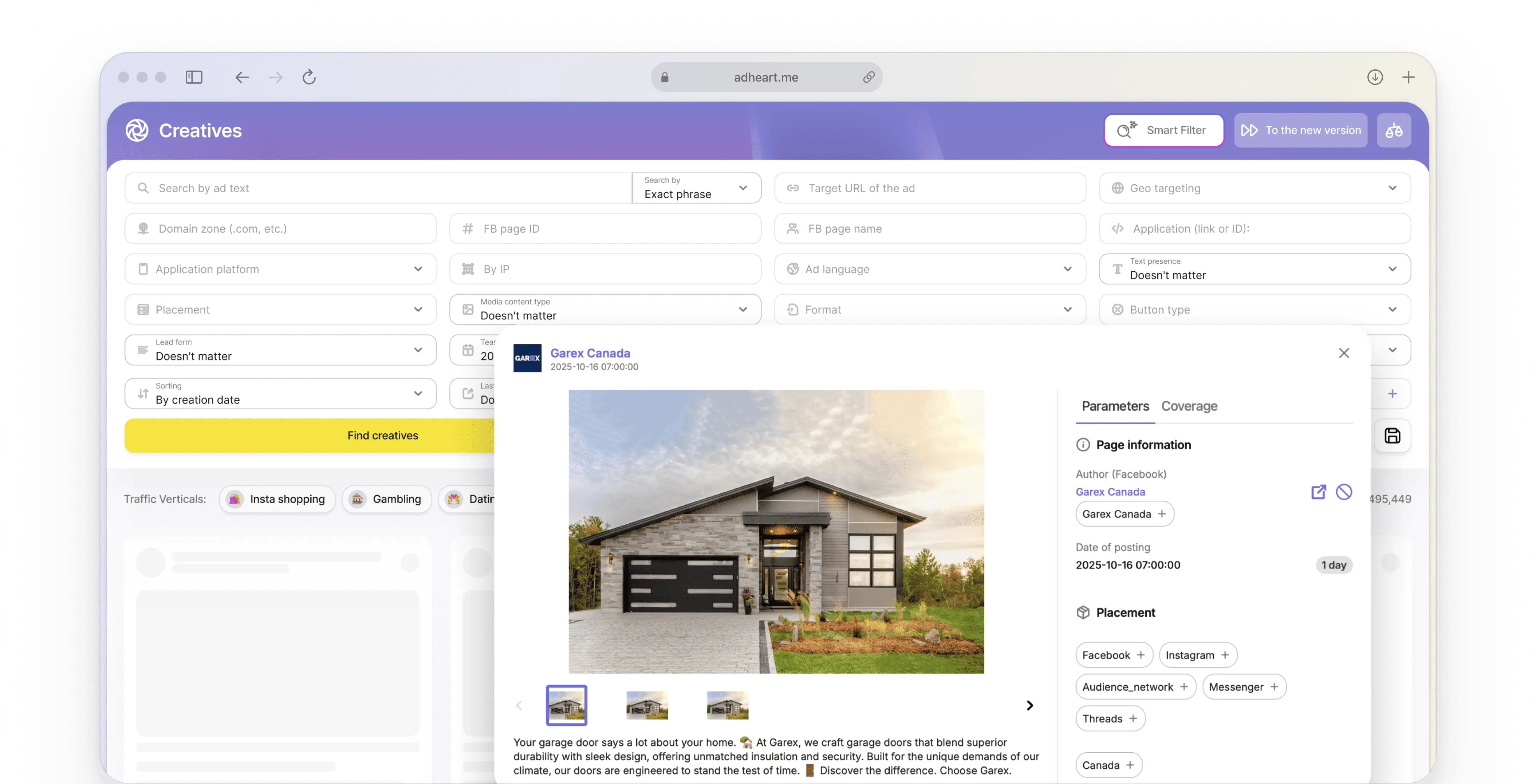 Explore your competitors’ winning ad campaigns and launch better ones with Adheart — the tool pros love